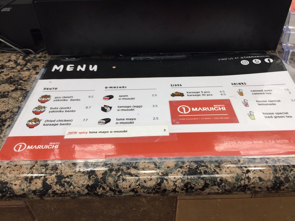 Maruichi Bento in Artesia, CA, offers a limited yet satisfying Japanese menu with bento boxes, rice bowls, and musubis. Customers praise the friendly family-run establishment for its attentive service and simple, delicious food. While the portion sizes may be small for some, the flavors are solid and tasty, especially the Gyu Yakiniku Bento and chicken karaage. The Spam musubi stands out for its generous size and affordable price. Offering takeout only, Maruichi Bento ensures convenience by bringing orders to your car. Although parking can be challenging, the quality of the dishes and personalized service make it a worthwhile visit for those seeking a light and flavorful Japanese meal.